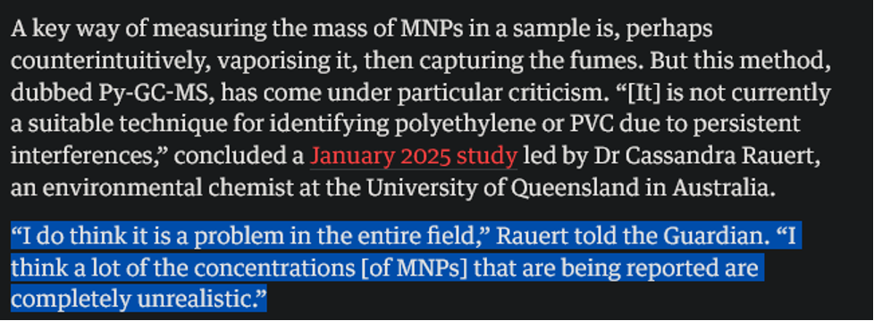 Kudos to The Guardian for highlighting flaws in questionable microplastic research. This action both builds this paper’s credibility and protects against misinformation.